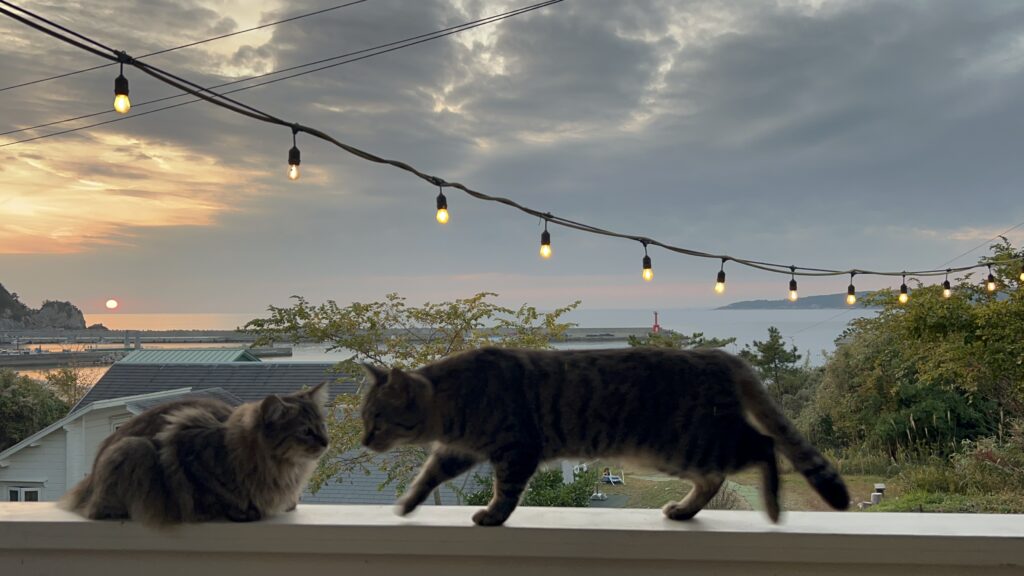 食事、チェックイン、チェックアウトは緑の建物でお願いします。その他御用がある場合はこちらにお越し下さい。